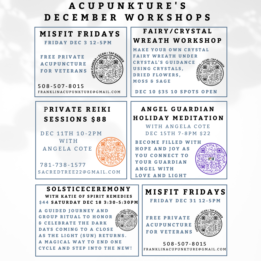 A Solstice Ceremony with our Shamanic Energy Healer, Katie Nadeau of @spirit_remedies (11 open spots)Please scan QR code or contact the clinic to RSVP. Space is limited. Masks mandatory during all sessions and workshops at the Wellness Clinic and Community Space regardless of vaccination status